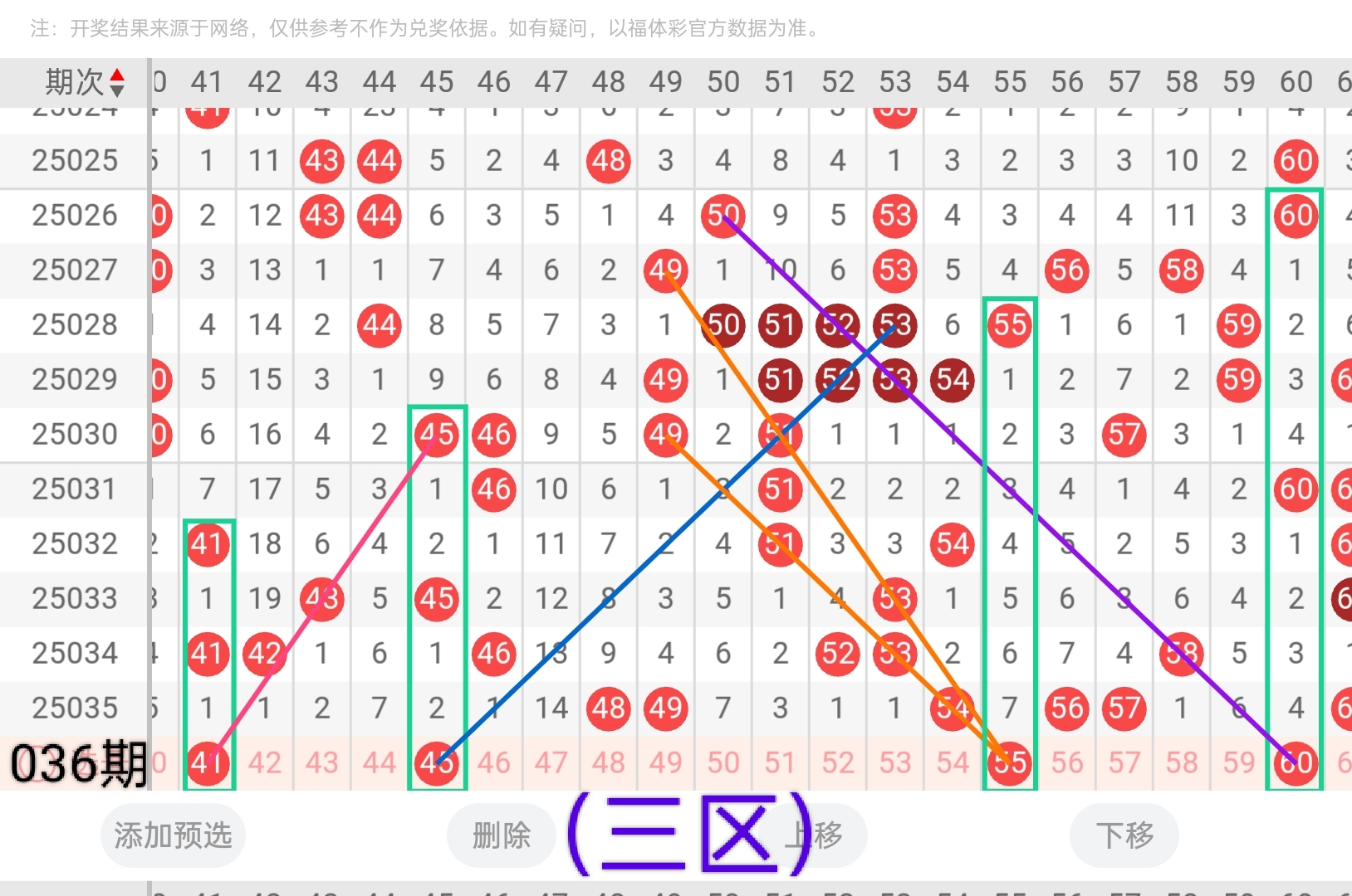 通过以上对上期的简单回顾,下面进入2025036期(下面简称本期)的选号分析: