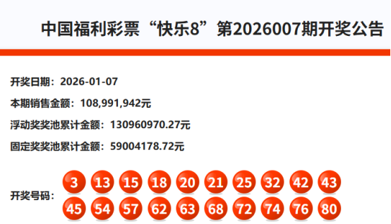 首先我们来回顾快乐8第2026007期开奖号码:
