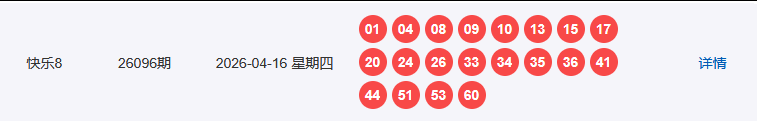1、开奖号码:01 04 08 09 10 13 15 17 20 24 26 33 34 35 36 41 44 51 53 60