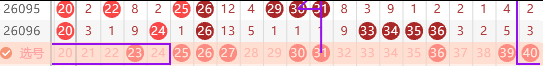 二区选号大底:23 25 26 27 30 31 36 39 40