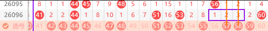 上期热态转常规,同尾落及同和值依然走势强健,本期依然可关注该种形态点位组合落位衔接对位回补;关注42 43对位点位下落;若是该组连号看不好,那么走同位复制三重连号走势,做形态复制对位点。本期该种形态有两个相同点,一是44 45;二是51 52 53;那么两组相同是否可以关注一组下落;后段连号下落的可能性也是比较高的。那么是否可以关注57 58 59形成连号走势;