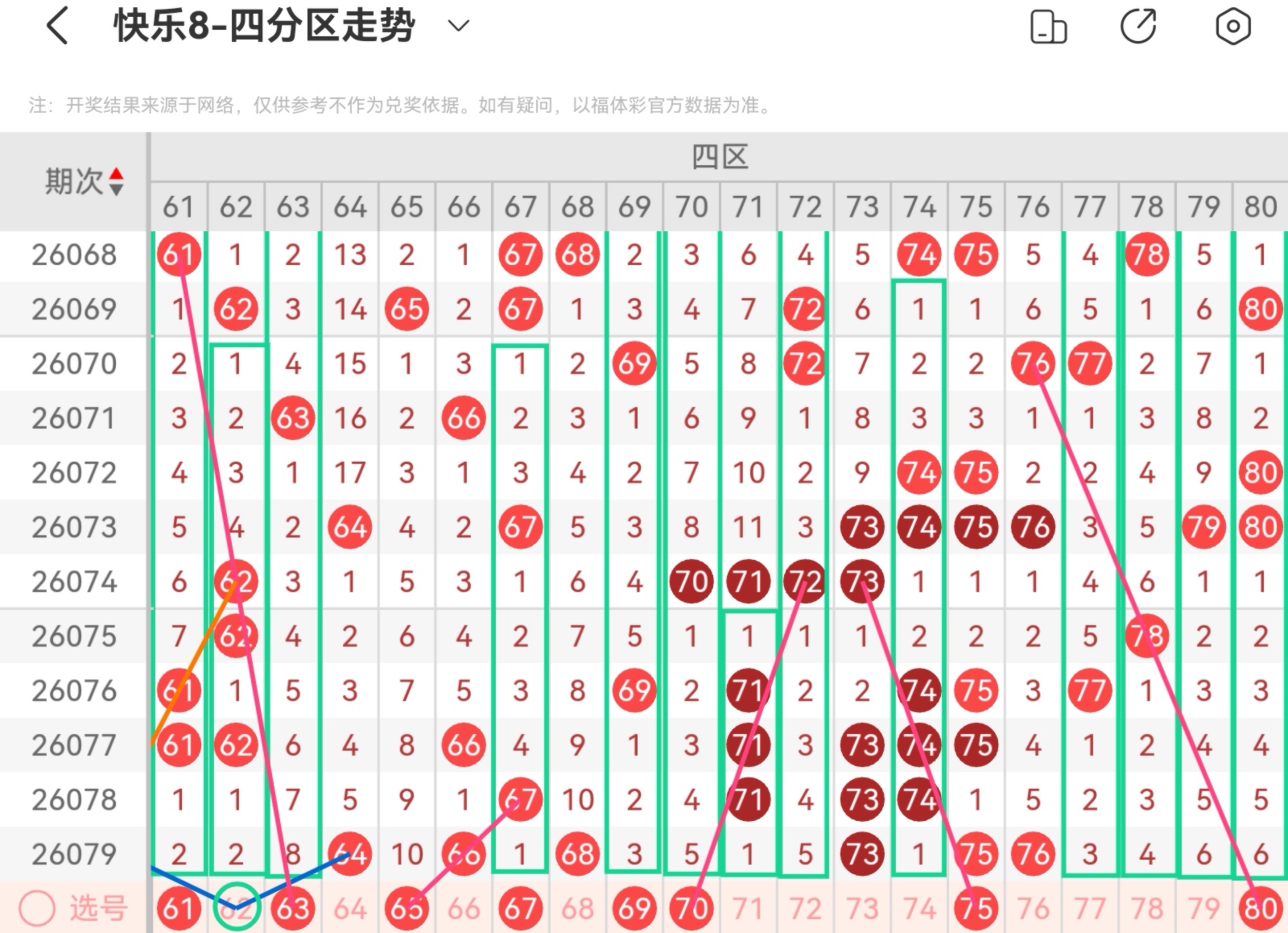 下面我为大家分享一下快乐八第26080基本走势分析:
