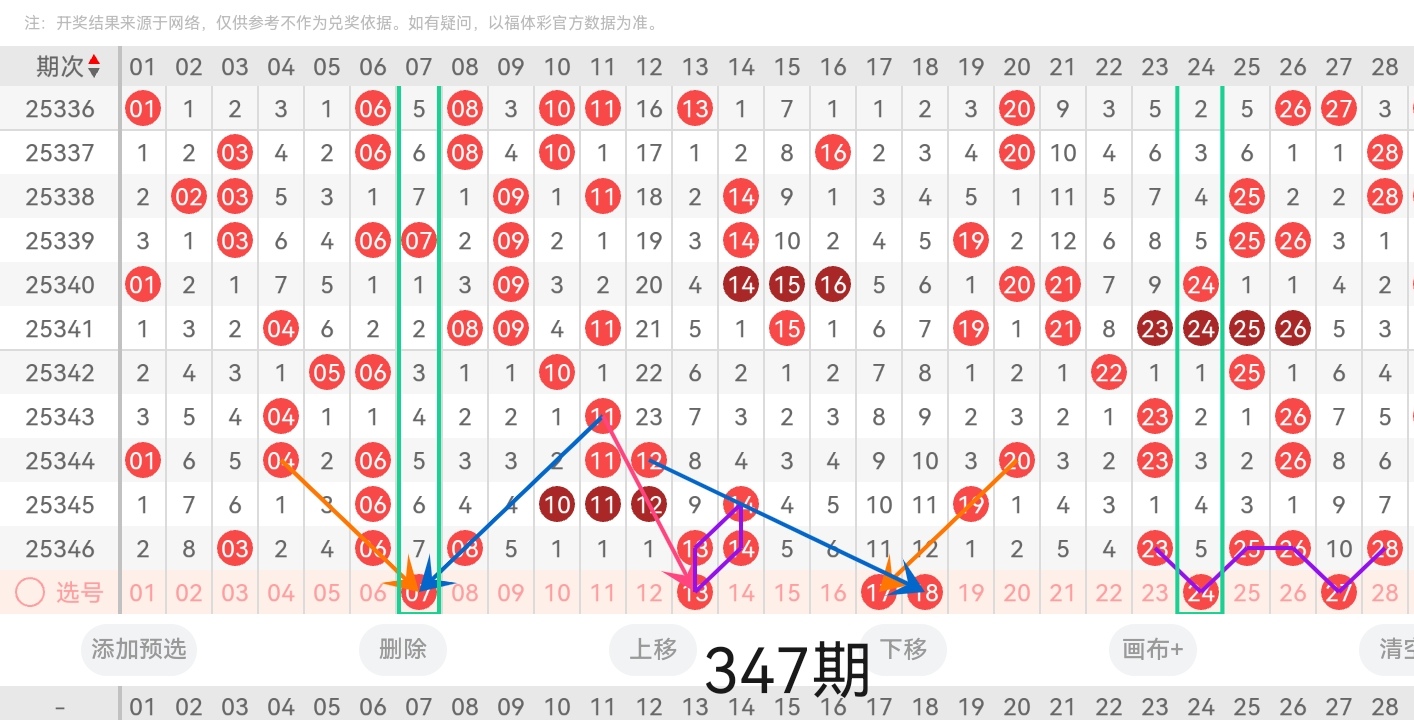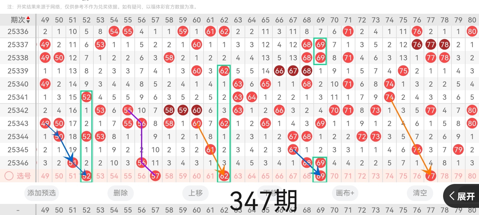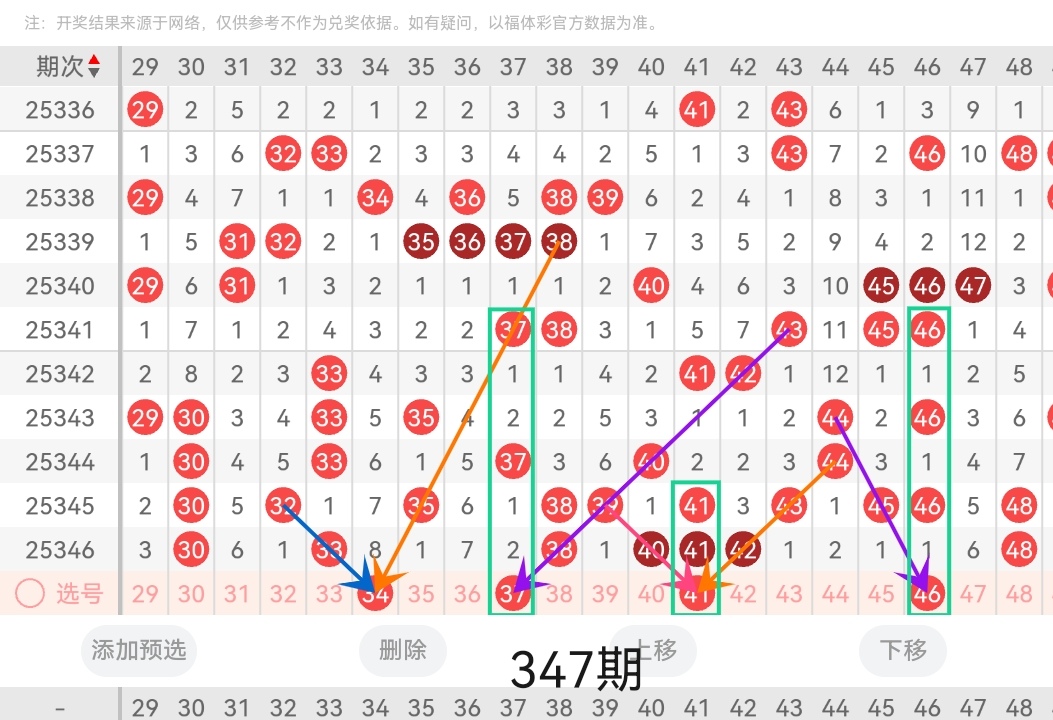 通过以上对上期的简单回顾,下面进入2025347期(下面简称本期)的选号分析: