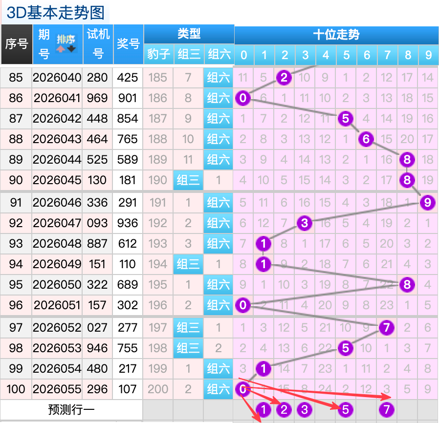上期的3D个位开7号球,上期开出的是组六按照形态的话本期打组六形态小防组三,上期的7号球落位是个位上的一个重码回补落位趋势,本期先来看6号球在个位还是有机会继续走分边码的落位点这里要注意防守,1号球和0号球是这里的落位点是两个小周期的落位点这里注意防守一码就好了也是这里的两码走势都是非常好看的注意选择一码,再看9号球这里注意是一个等差回补的趋势要注意防守。