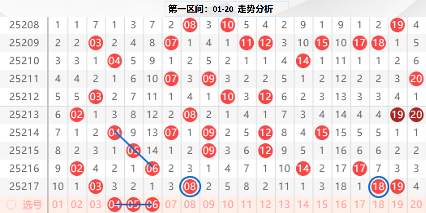 一区分析:【01-20】(走势图标注号码非小黄车大底,请谨慎参考,具体思路将在直播间分享讨论)