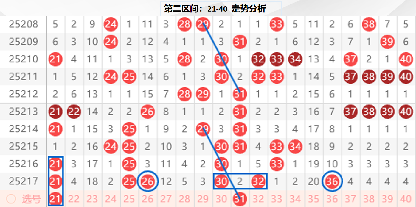 二区分析:【21-40】(走势图标注号码非小黄车大底,请谨慎参考,具体思路将在直播间分享讨论)