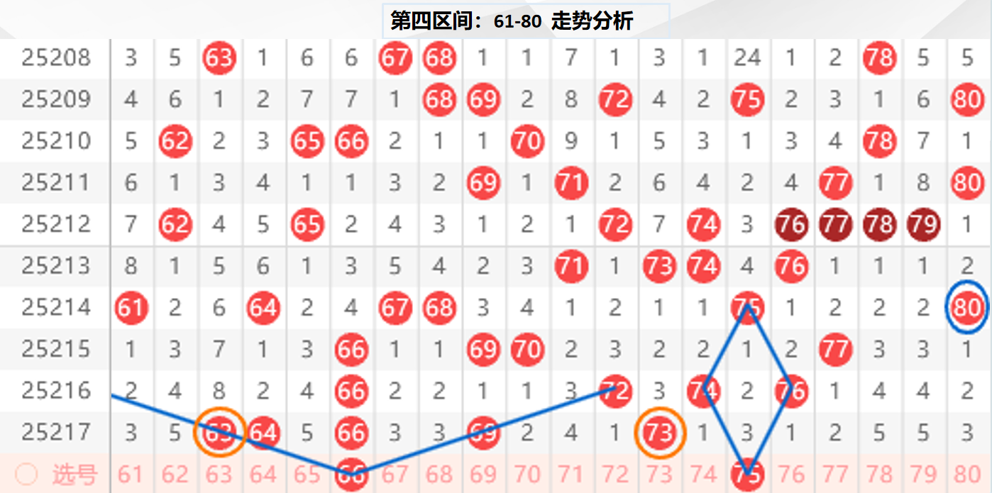 四区分析:【61-80】(走势图标注号码非小黄车大底,请谨慎参考,具体思路将在直播间分享讨论)