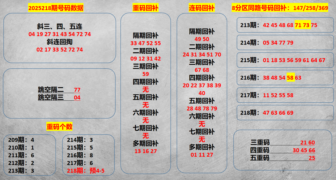上期四区的出号中在后区的连隔形态上保持着出号的重点,空位形态上开出分边号码,而在空位中也是保持着放空点位的回补,从区间的出号点位和形态上考虑重点,本期还是要首先关注空位形态上的出号,63 64 69三码下方的出号中注意选择,以区间在空位形态上的出号表现判断,分边中可优先侧重出号位置。而在空位中本期还是要小心周期号码的接力出现,区间在小周期上也是保持着出号的重点,对应本期的位置上考虑,71 75 76 77 80五码中要关注出号重点,同样以放空形态的对应做5码中的判断选择,1-2码的出号即可。而在温冷周期中也要关注78 79的空位重点以及分边中的62 65回补,区间做冷周期接力出号判断中还是要结合形态考虑,如空位形态上的连号63 64做分边中考虑温冷的同时,空位中只做防守重点即可。整区间在布局上重点是结合形态判断,以同路和和假连位置上的出号选择考虑周期号码的布局模式,侧重分边的同路选择重点,区间在这种组合出号中是当前的重点。