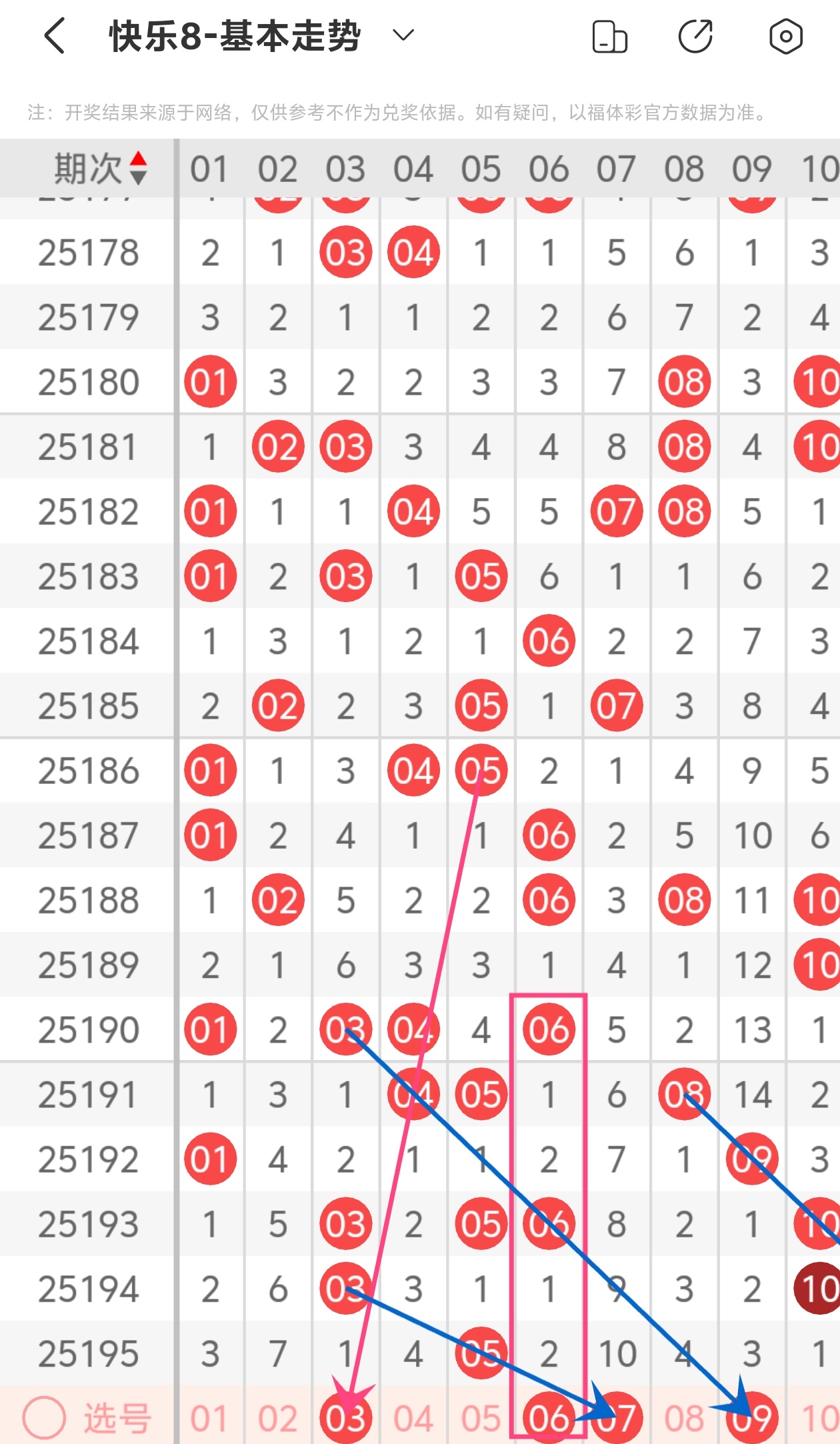 大伙都知道,玩彩票得理性,谁也不能打包票百分百中奖,别人的看法能参考,自己的判断也不能丢。但我这次对2025196期福彩快乐8的分析,那可是下足了功夫!