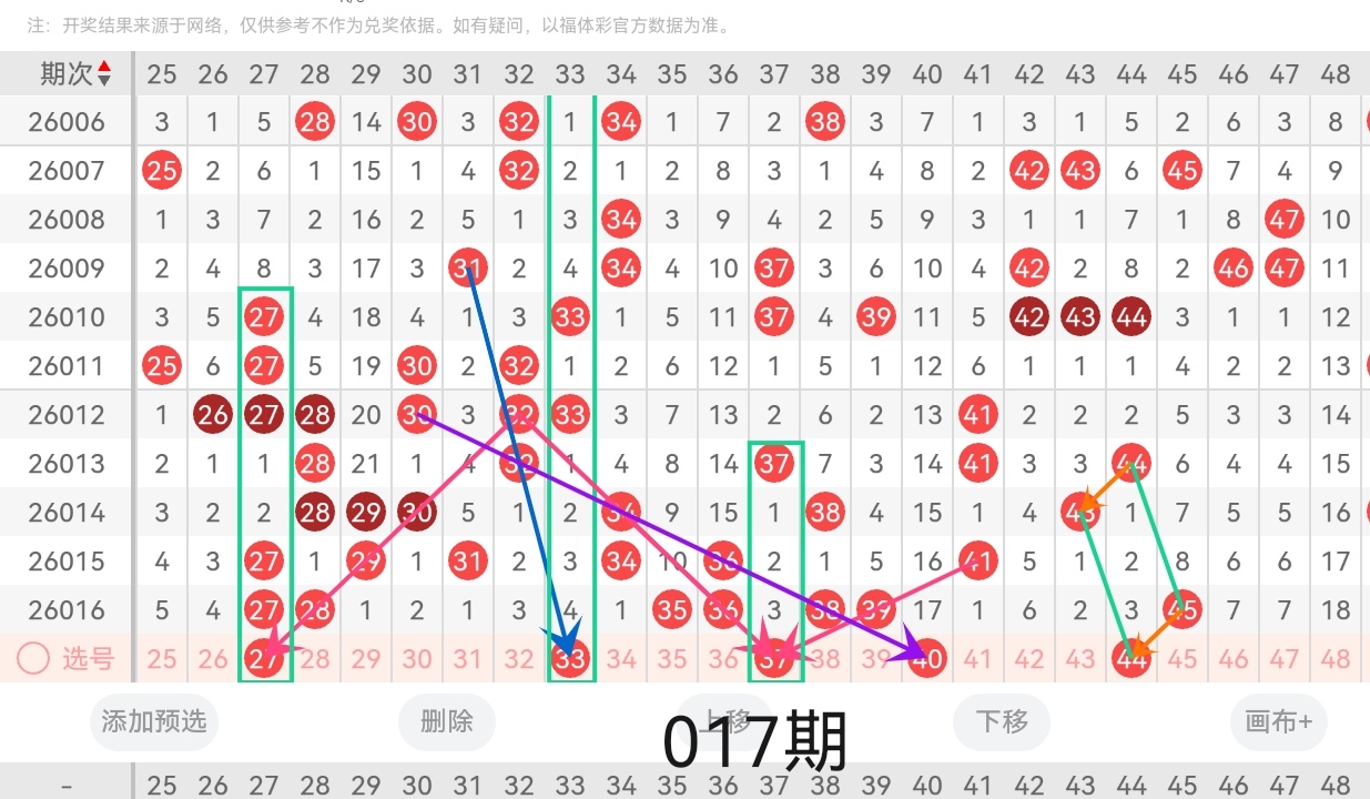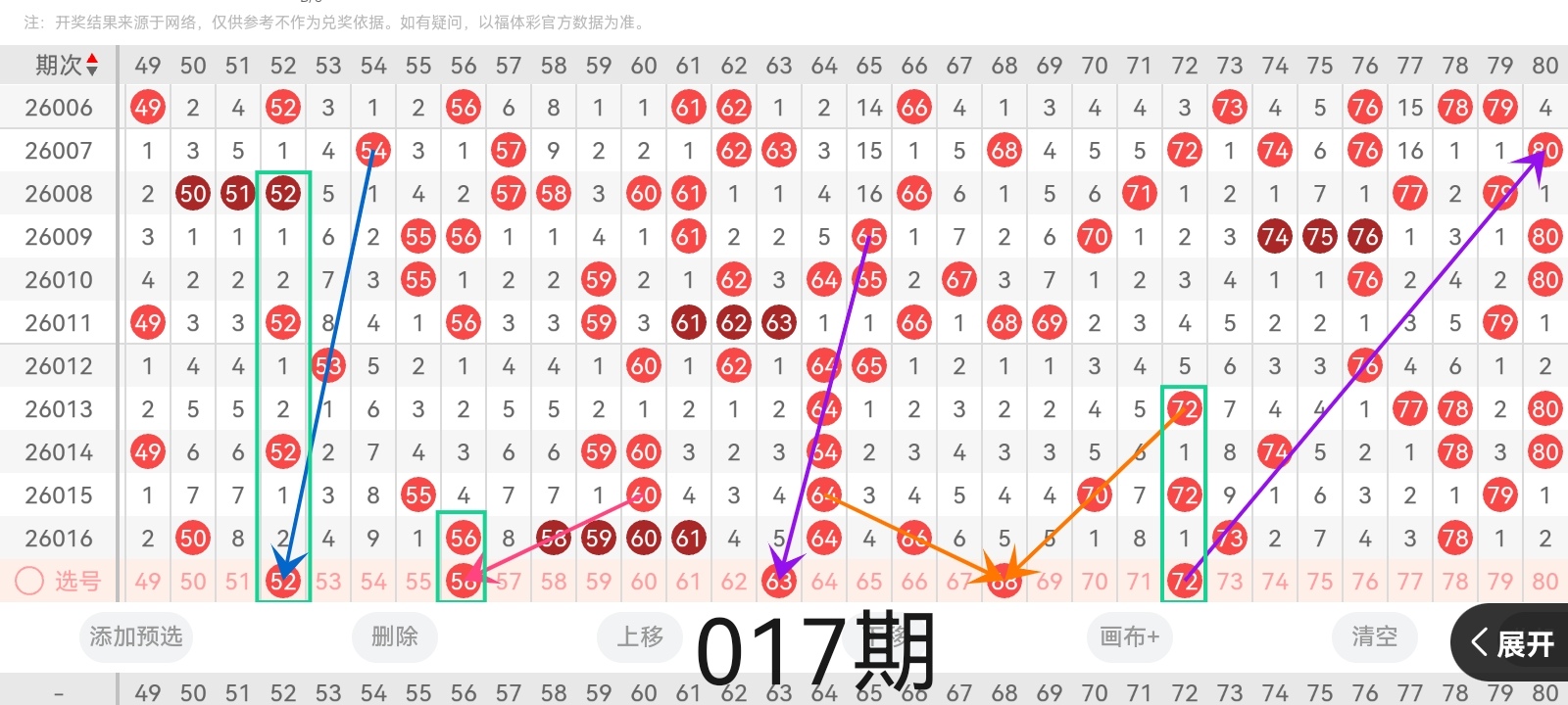 通过以上对上期的简单回顾,下面进入2026017期(下面简称本期)的选号分析: