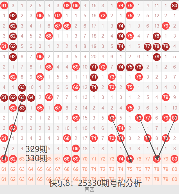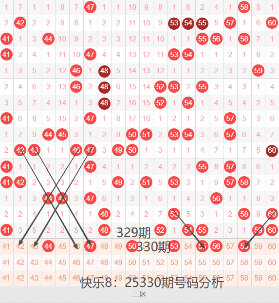 回顾25329期开奖号码:02 04 10 11 15 17 18 23 26 27 30 33 41 48 52 54 55 59 60 69 ,最近一段时间号码爆区几率特别高,目前已经连续多次出现爆区热开的情况,爆区之后基本上都是迅速回调,转换至其他区间继续暴热,大家若是能抓准区间,或许有很大的机会,但是号码的变盘规律是非常的快,很难把握,个人建议谨慎选择,不要 盲目的去操作~~