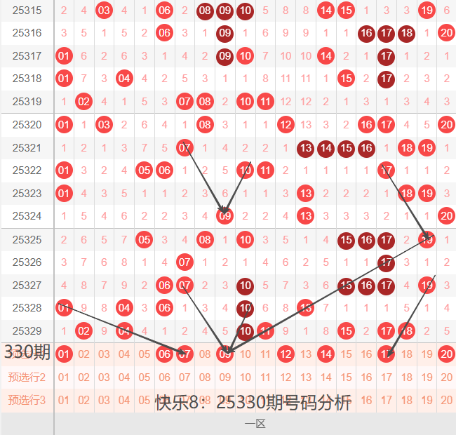25330期,我们先看下一区间:01-20号码球,如下图:
