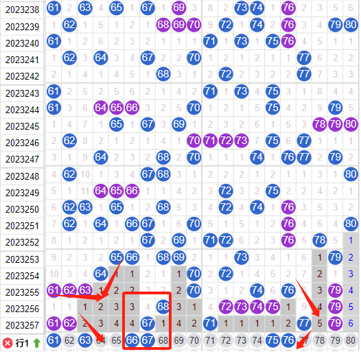 上期四区间开出了6个奖号(61.62.67.71.77.79)上期回顾四区也是开出了6个号码保持不动的状态,79号反着走出三重号隔期的开的形态还是来了哈,本期我们先来看63号球的一个分边走的形态和上面的(63.64)号球是走出了同形态的一个走势这里我们要注意研判,76号球和上期的77号球走出了一个倒三角的一个形态这也是我7字头最看好的号码,四区在本期的做号上我们还是要小心谨慎些。