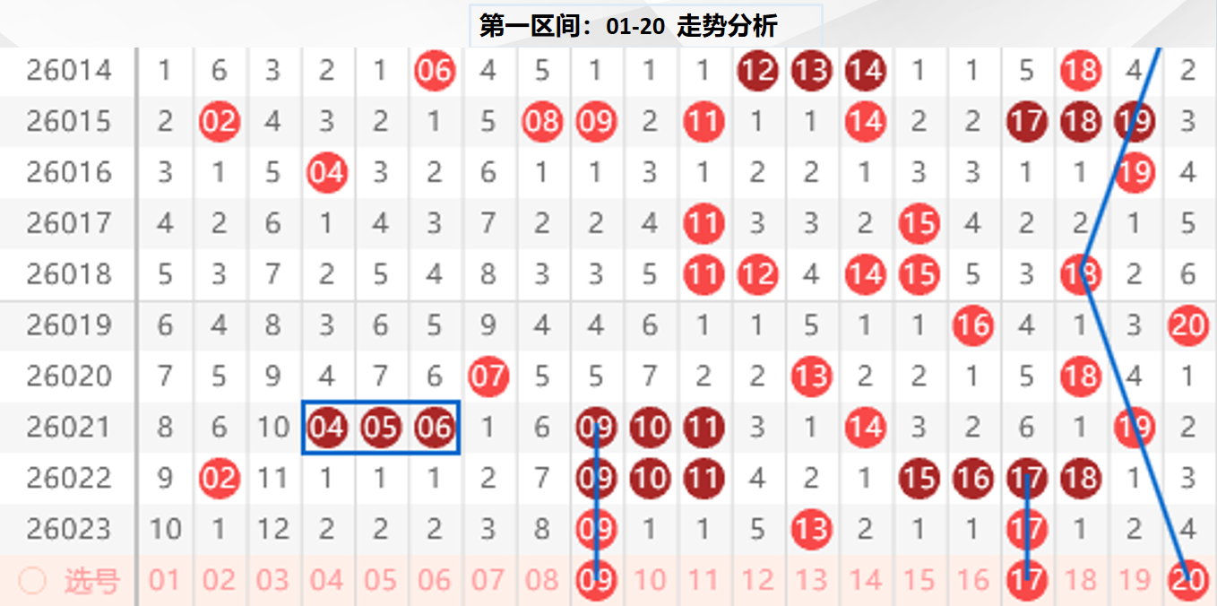 一区分析:【01-20】(走势图标注号码非小黄车大底,请谨慎参考,具体思路将在直播间分享讨论)