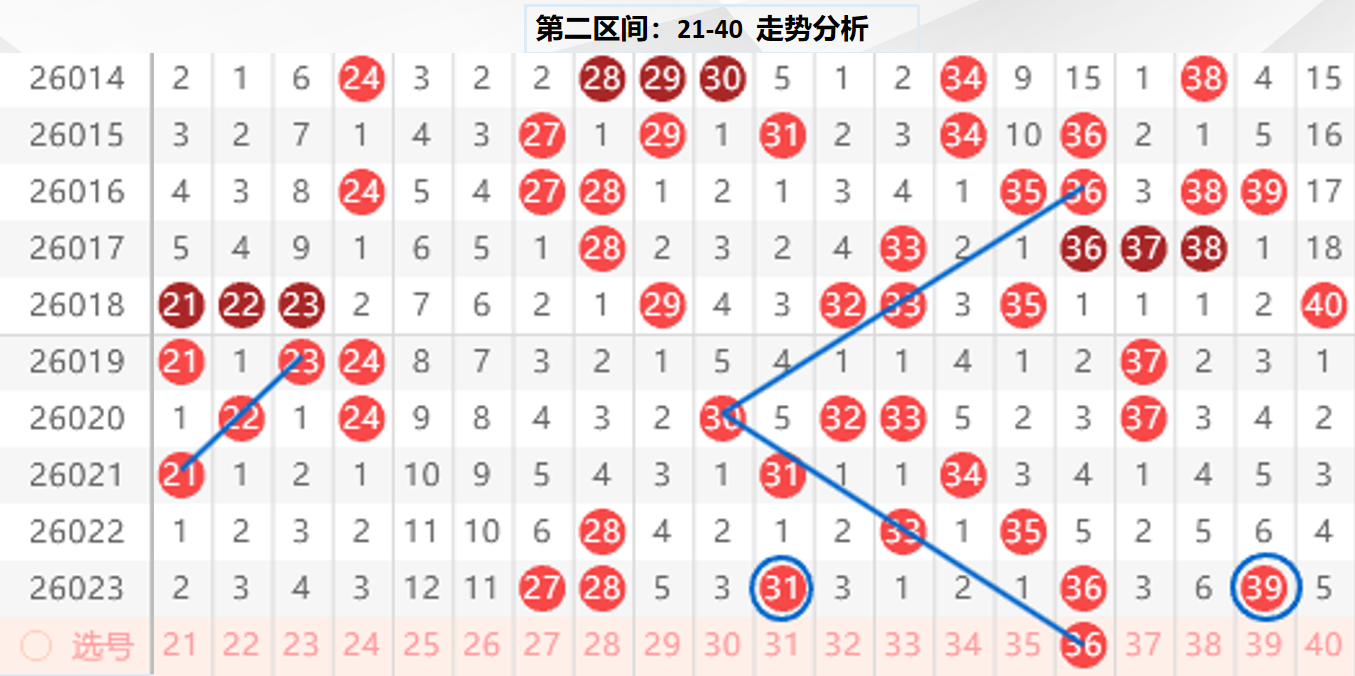 二区分析:【21-40】(走势图标注号码非小黄车大底,请谨慎参考,具体思路将在直播间分享讨论)