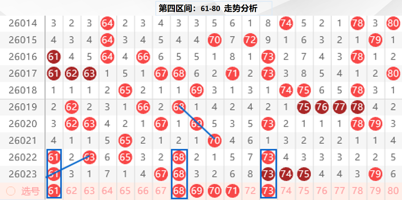 四区分析:【61-80】(走势图标注号码非小黄车大底,请谨慎参考,具体思路将在直播间分享讨论)