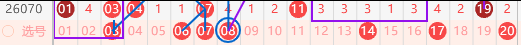该区间落码数,持续走热,区域横连开出连号比较强健;上期头部以假四连方式,连号带重码空位回补;等距横连两组构建整体的布局形态,该区间整体落位布局走势可关注同尾落衔接开出,从形态落位点位上面,可关注07 17以及03 13两组衔接落位点位,且该区间重码走势比较热,可关注该区间重码衔接不断连,那么在走势上可关注03 11 07 19下落等于一码下落;且等距横连应该还是会持续下落,那么可关注空一空二的等距衔接下落回补;