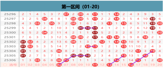 本区上期开出6码的区间布局,那么在本期我们关注的就是区间的同尾出号,优先开率的就是分边的出号,第二点就是考虑同路的出号,我们选择一重一分的形态布局出号,空位上我们优先关注小周期的出号01 09 10 11的四码的择一选择,分边温冷上04 05 13 16我们也是选择一码的出号,其他位置就不是我们考虑的重点了。