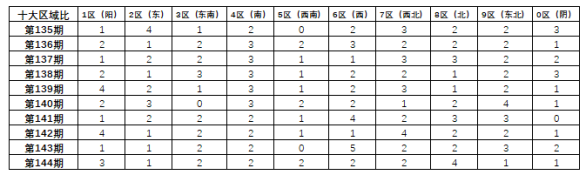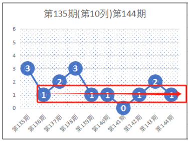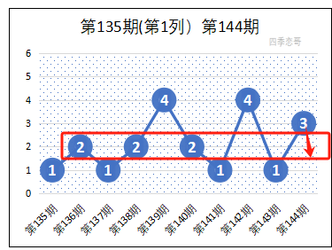 近十期走出了1-2-1-2-4-2-1-4-1-3走势,根据我前面对一区的解释,说明这个区是很有规律的。