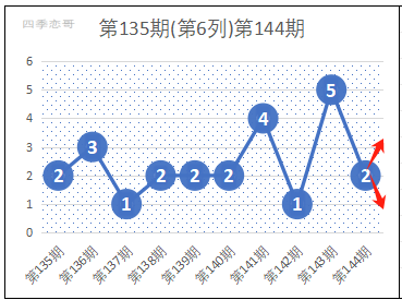 上期走到1个号,也是在我们的预测范围内。今天根据上图来看会有小幅反弹,因此本期看1-2个号。