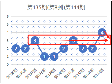 近十期走出3-2-3-2-3-1-2-4-2-2走势,根据我上面对本区的定义很刚,一旦趋势转向,上下浮动会较大。