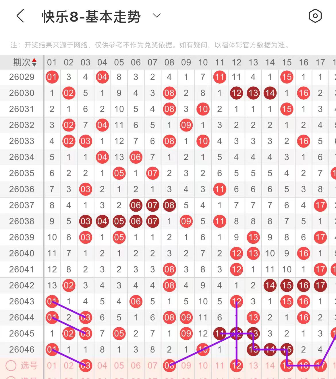01-10区:本区间上期开出了两个号码,从号码走势图上看,该区现属于温号区,出号个数在两个号码左右,有出号走势的号码有03号,01对应03出号走势,08号,斜连出号走势。