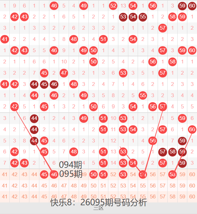 三区间41-60号码球走势,如下图: