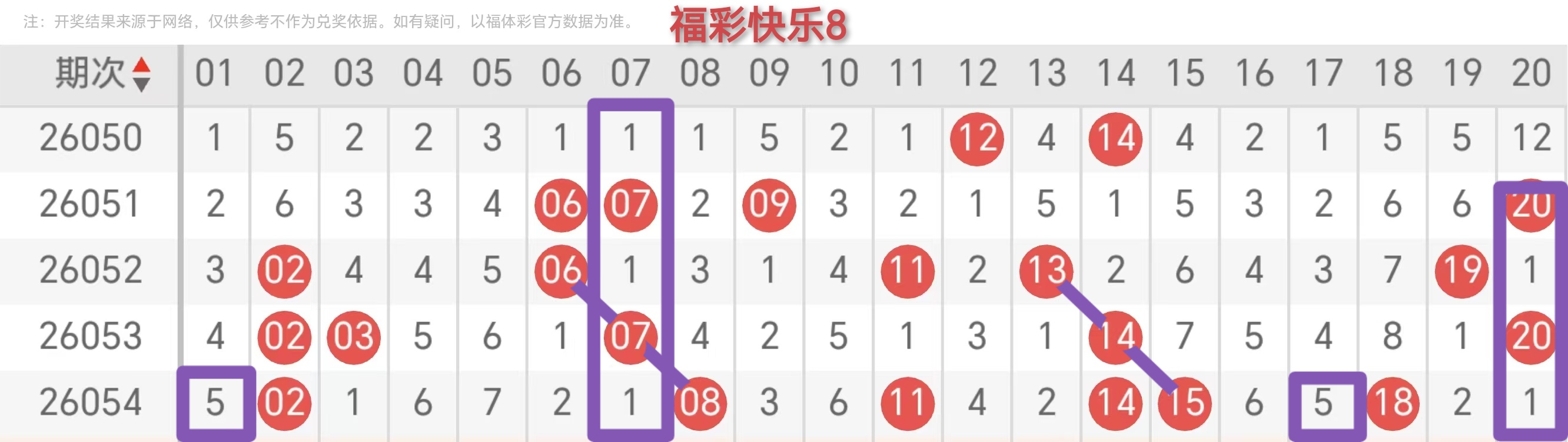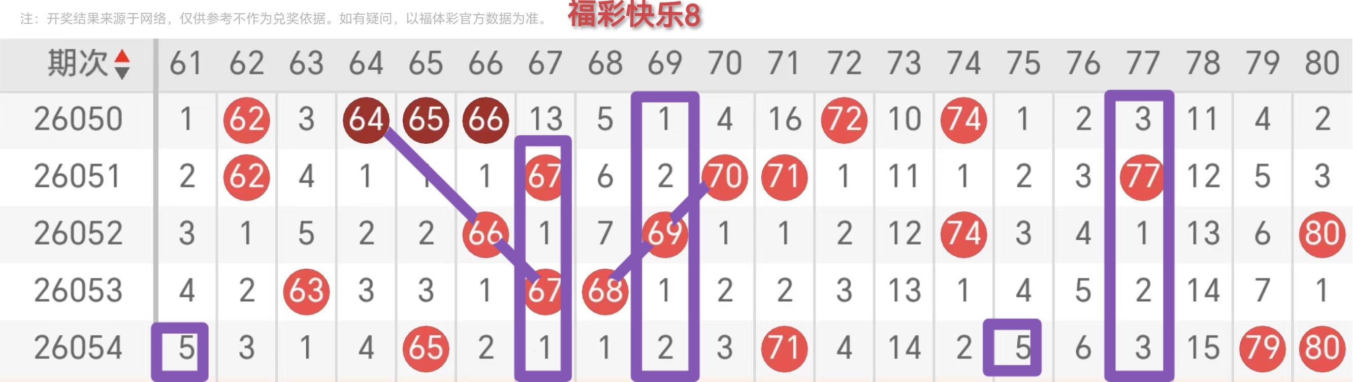 福彩快乐8第2026055期以上为个人统计,具体详细选号分析及购彩方案的推荐移步个人主页会员文章区!感谢粉丝朋友的一直支持和关注,祝君好运,下期再会!