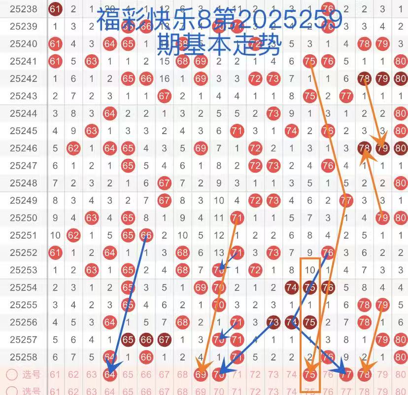 25259期福彩快乐8,走势综合分析(本期一胆参考77)