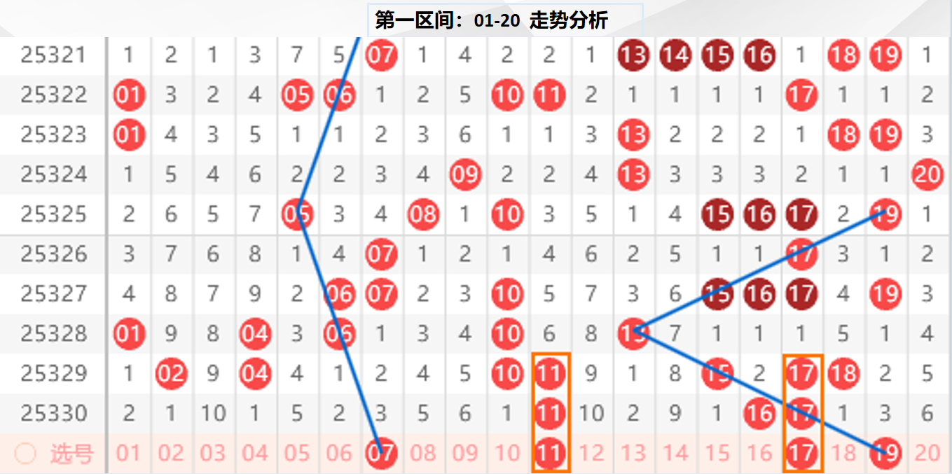 一区分析:【01-20】(走势图标注号码非小黄车大底,请谨慎参考,具体思路将在直播间分享讨论)