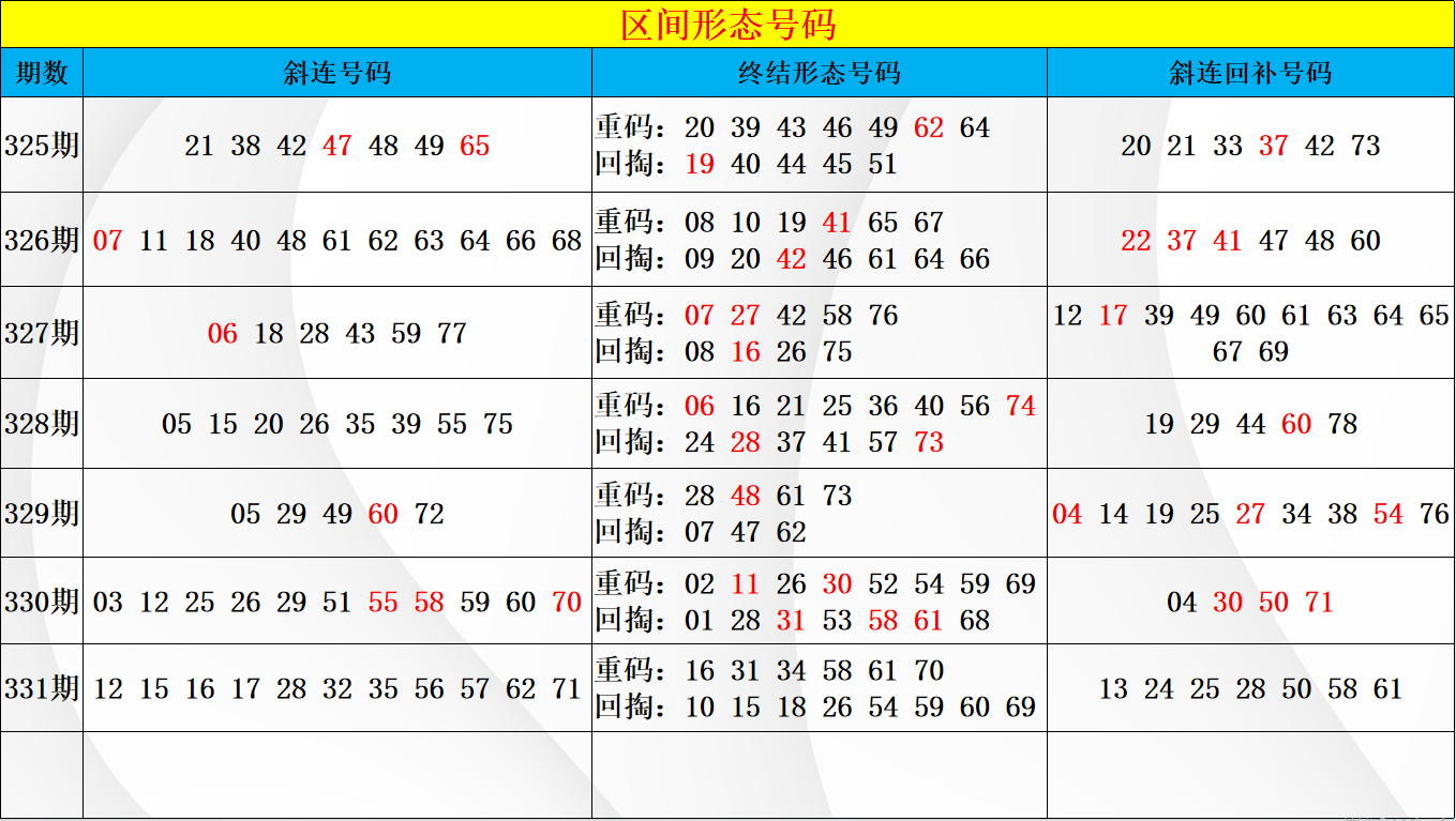 上期四区回补5码,形态结合断头的回补中都有位置开号,但回补上还是缺少重码的形态,且已经连续两期断重码,这在重码的周期上是比较罕见,毕竟按近期所有区间做重码的最大遗漏上也是少出现的情况,所以本期在四区的布局上还是要重点考虑重码的开出机会,以近段时间在重码的开号形态上做回补判断,终结上的出号点位中还是要侧重判断机会,包括下拉形态上本期在61 70 71三码中要特别注意布局选择,回补形态上是考虑的重点。而在同尾的近期开号中也要关注至少一码下方的布局,结合形态回补中还是以61 71下方做形态判断重点,注意放空位置上的防守选择。空位中的回补机会主要还是以周期上的接力位置做侧重选择,其中小周期上的判断重点主要还是考虑在后区的77 79放空,隔号形态当前的最大遗漏放空也是两期,本期在这里出号的机会就非常大,优先判断76 77 79 80的开号,分边中考虑重点。