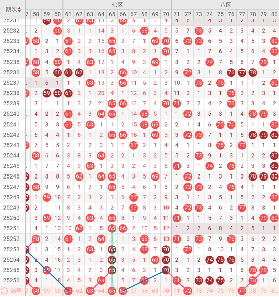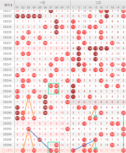 结合上期的数据分析,对快乐8第25257期的推荐如下: