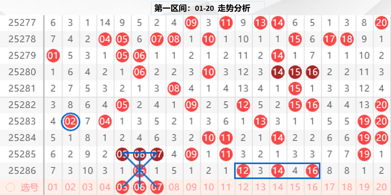 一区分析:【01-20】(走势图标注号码非小黄车大底,请谨慎参考,具体思路将在直播间分享讨论)