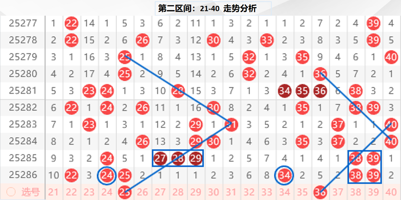 二区分析:【21-40】(走势图标注号码非小黄车大底,请谨慎参考,具体思路将在直播间分享讨论)