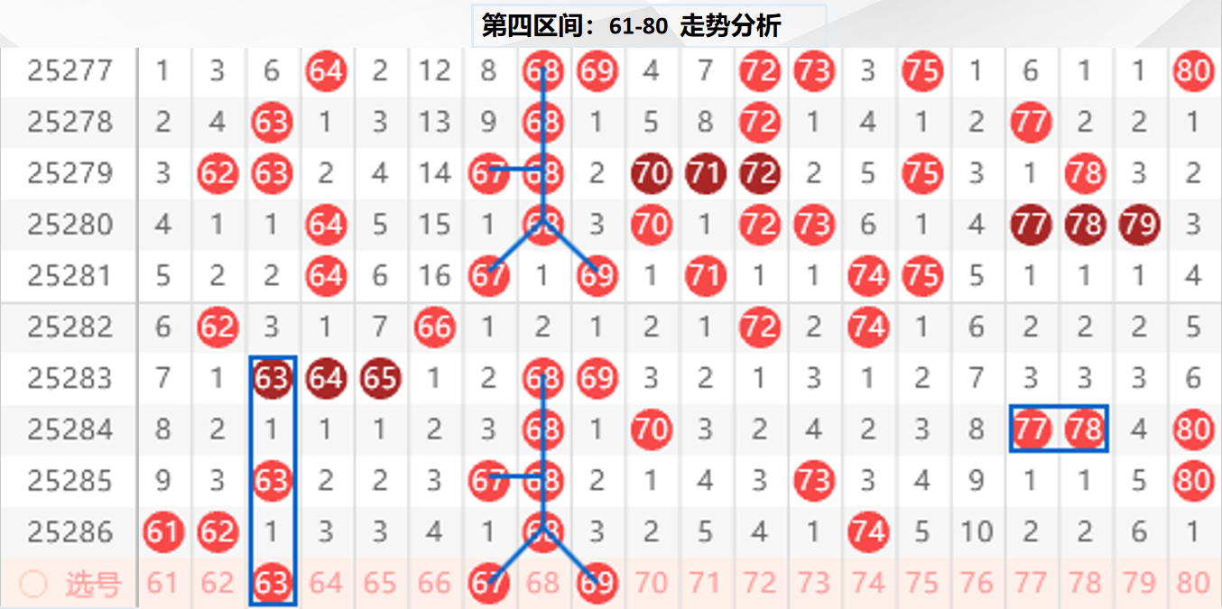 四区分析:【61-80】(走势图标注号码非小黄车大底,请谨慎参考,具体思路将在直播间分享讨论)