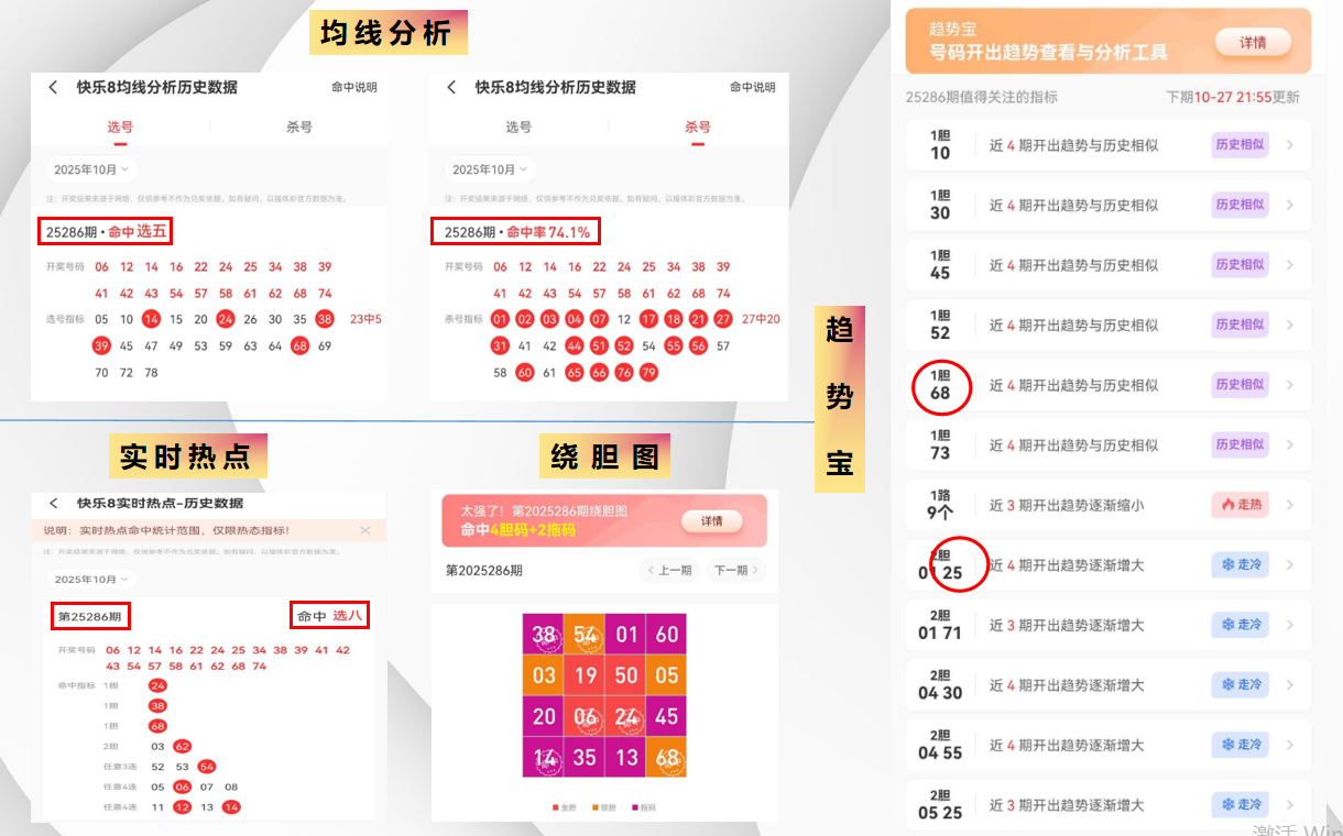 上期会员工具均线分析杀号正确率74.1%,选号命中选五,利用SVIP会员工具中的均线分析杀号和选号与实时热点、绕胆图配合,可增加每期的中奖概率,如有需要请点击#3号链接办理SVIP会员,当日办理会员可免费查看当期小黄车文章及选号方案。