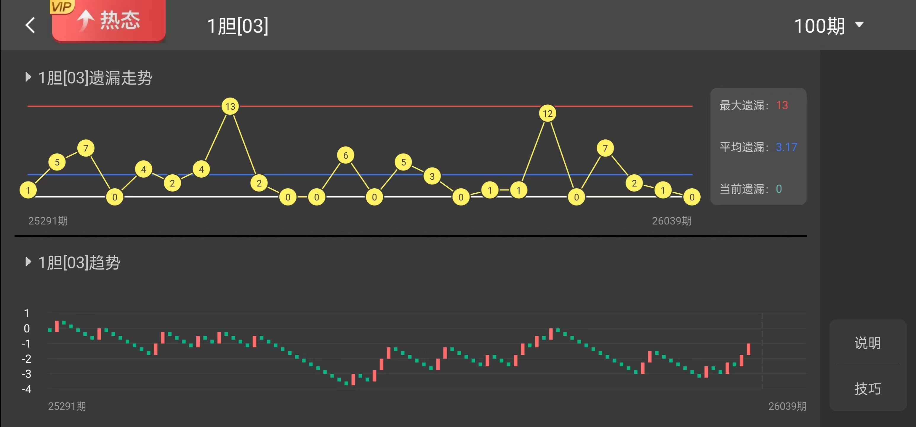 将120个号码求和后除以120,得到平均数为 44.8,略低于中位数,说明近期号码整体略向中小号倾斜。