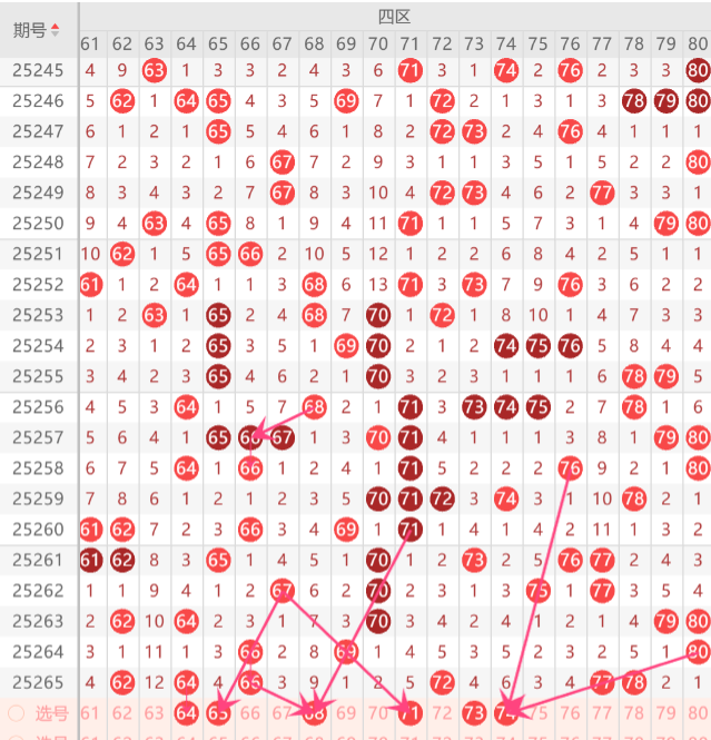 四区间打底号是61.63.66.68.69.71.73.74.79中参考2-3码开出机会