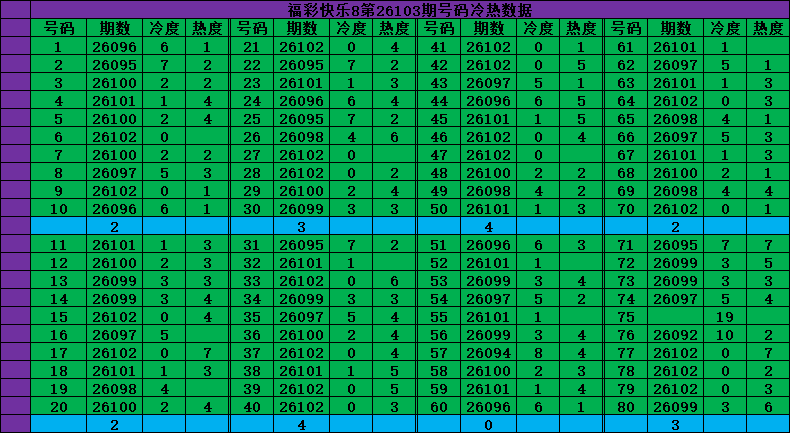福彩快乐8第26103期号码分析推荐