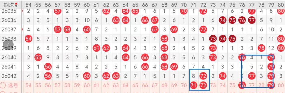 第四区间的走势分析:第四区间上期开出了六个号码球,主要的落号点位在四区间的后半区,走出了三奇三偶的形态走势,上期四区间的前半区落下了两个号码球,后半区落下了四个号码球,整个四区间处于走热的趋势,根据四区间的走势规律,今天的四区间我们主看后半区71 72姊妹对号码的落位,落下一码的机会还是有的,再看76 79组合的落位,走出了对称的形态走势!这四个号球建议大家打个四胆拖,或者打个四码复二比较稳妥,参考为主!