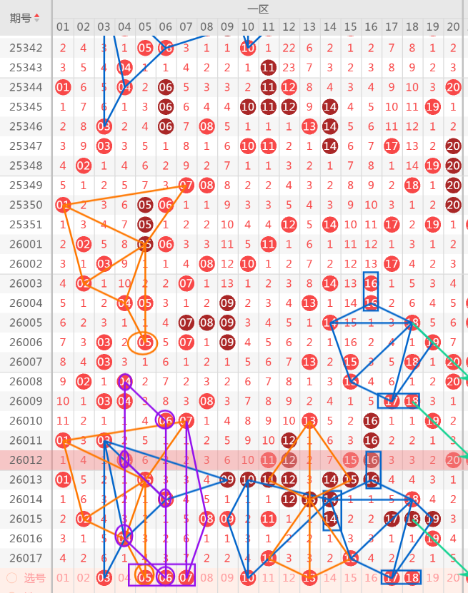 上期017期大底分析正确13个,今天继续,上期预测一区下方会继续走空,果然一区只出了2个,二区出了5个,三区出了5个,四区出了8个,这期注意重码的慎重选择和注意空位回补号码的选择.