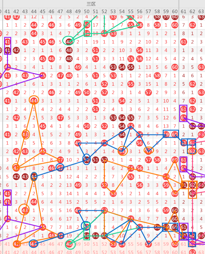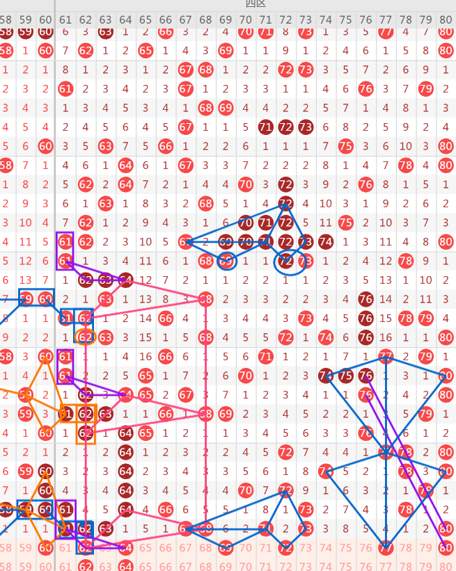 60:属于一期遗漏回补这里的一期遗漏号码有58-59-60-64-66,其中重点关注60-64两个号码的落下,可二选一.