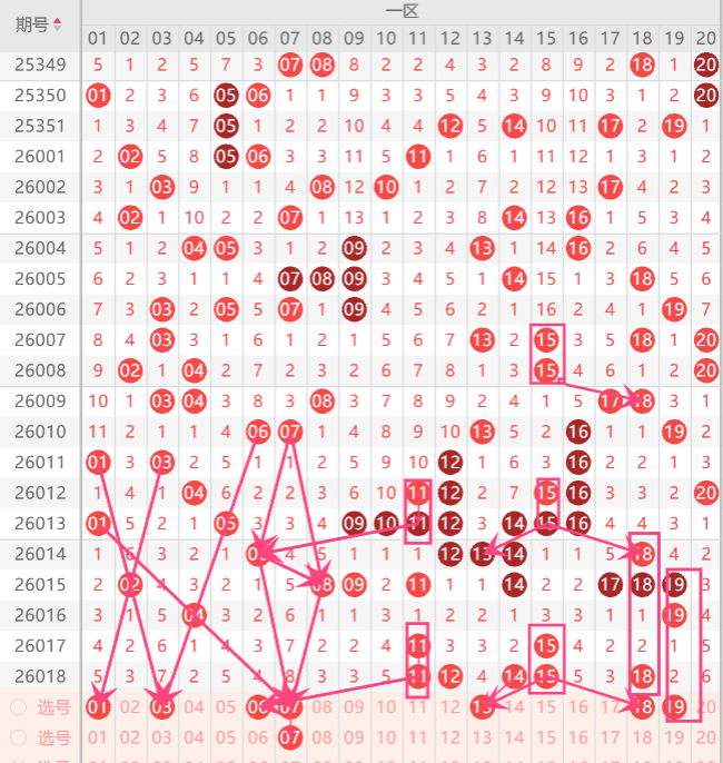 一区间打底号是01.03.04.07.08.10.11.16.18中参考3-4码开出机会,