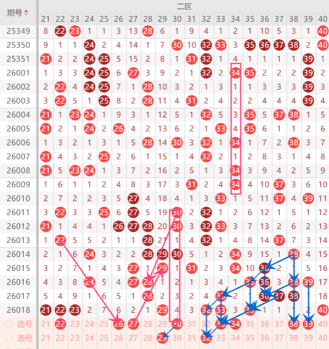 二区间注意打底号是21.22.24.25.26.27.30.32.33.38..中关注3-4码开出机会。