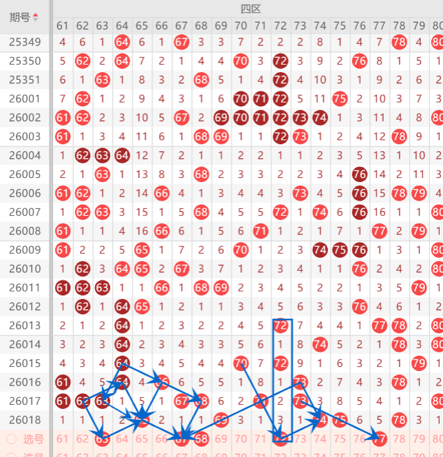 四区间的打底号是62.64.66.68.70.71.72.74.80中参考3-4码开出机会