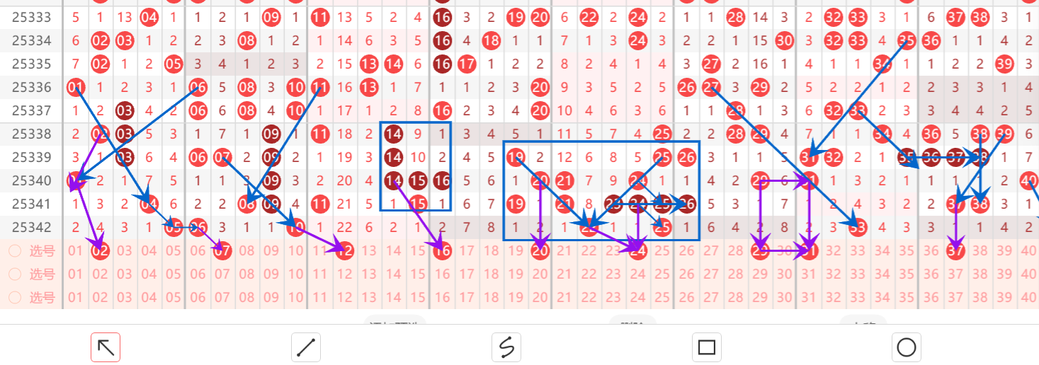 第二:判断第一区间热度会有所下降,注意一些奇数偶数搭配的联动号码,需关注斜连形态的号码。