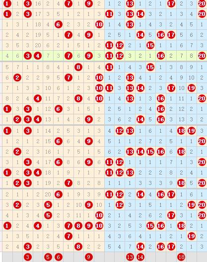 第一区间,第一小区上期给出一个号码,本期看好两个号码,03 05,第二小区上期给出一个号码,本期看好两个号码06 09,第三小区上期给出一个号码,本期看好两个号码两个号码,13 14,第四小区,上期给出两个号码,本期看好一个号码,18.