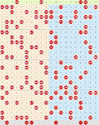 整体第四区间需要注意前段的连号下面的66 会不会给,还有邻码会给62还是67,后段的凤尾是77 还是78,整体第四区间是我比较看好的号。