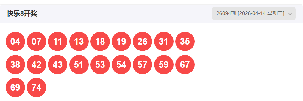 一、快乐八2026094期开奖号码