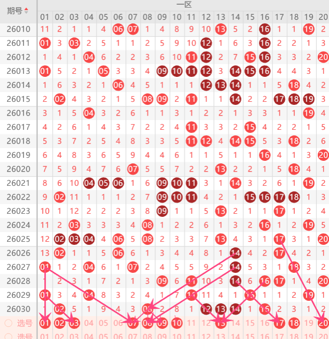 一区间打底号是01.02.03.05.07.08.09.10.16.18.20中参考2-3码开出机会,